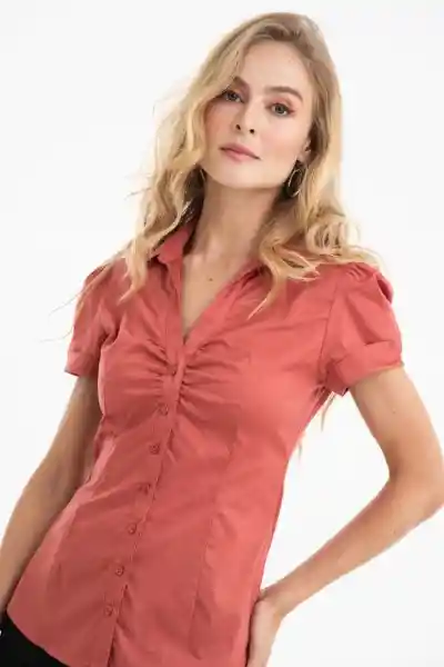 En Fondo Entero Con Cuello y Perilla Completa Recogido en Busto Ajuste Con Pinzas Manga Corta Con Detalle de Guardapolvo.