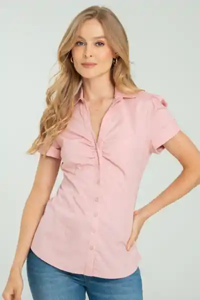 En Fondo Entero Con Cuello y Perilla Completa Recogido en Busto Ajuste Con Pinzas Manga Corta Con Detalle de Guardapolvo.