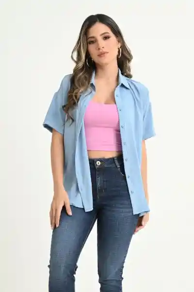 En Twill Fondo Entero Cuello Camisero Perrilla Completa Con Botones Manga Corta.