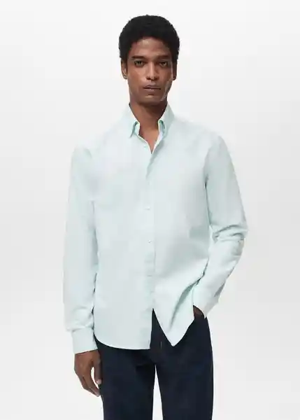 Bajo Redondeado Cuello Abotonado el Modelo Mide 190 cm y Lleva Una Talla M Logo de Mango Bordado en el Pecho Manga Larga Con Puños Abotonados Regular Fit Tejido Oxford de 100% Algodón - 87090653_40.