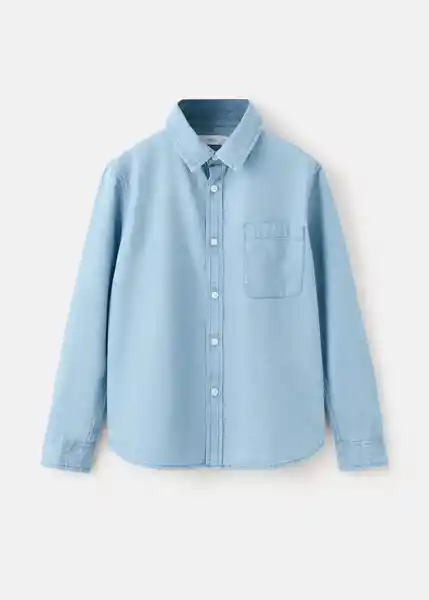 Bolsillo de Parche en el Pecho Cierre de Botones en la Parte Delantera Cuello Camisero Diseño Liso Diseño Recto Manga Larga Con Puños Abotonados Tejido Denim 100% Algodón - 27055153_Tc.