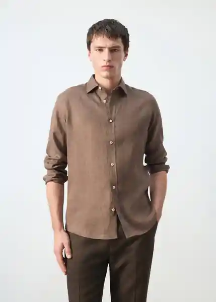 Bajo Redondeado Cierre Delantero Con Botones Cuello Camisero Detalle de Pinzas Traseras Essentials: Made to Last el Color Arena y Azul Noche Son Exclusivos Online Manga Larga Con Puños Abotonados Regular Fit Tejido 100% Lino - 27085939_32.
