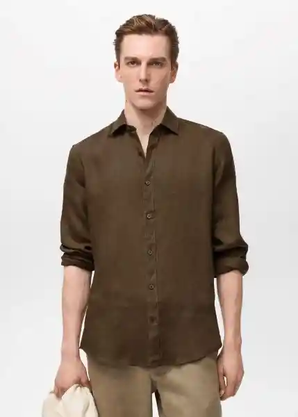 Bajo Redondeado Cierre Delantero Con Botones Cuello Camisero Detalle de Pinzas Traseras el Color Azul Celeste es Exclusivo Online el Modelo Mide 190 cm y Lleva Una Talla M Manga Larga Con Puños Abotonados Regular Fit Tejido 100% de Lino - 87085950_37.