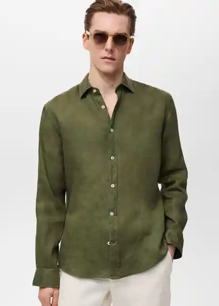 Bajo Redondeado Cierre Delantero Con Botones Cuello Camisero Detalle de Pinzas Traseras el Color Azul Celeste es Exclusivo Online el Modelo Mide 190 cm y Lleva Una Talla M Manga Larga Con Puños Abotonados Regular Fit Tejido 100% de Lino - 87085950_43.