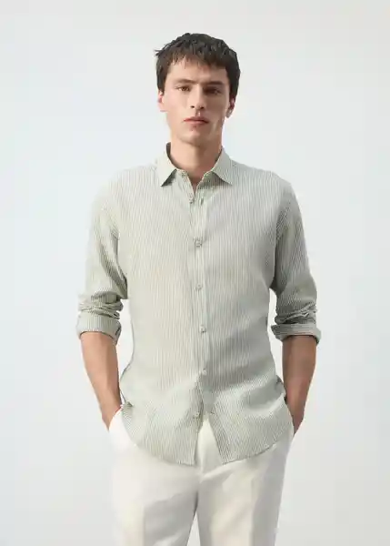 Bajo Redondeado Cierre Delantero Con Botones Cuello Camisero Detalle de Pinzas Traseras Diseño de Rayas Finas Essentials: Made to Last el Color Khaki es Exclusivo Online Manga Larga Con Puños Abotonados Regular Fit Tejido 100% Lino - 27065940_37.