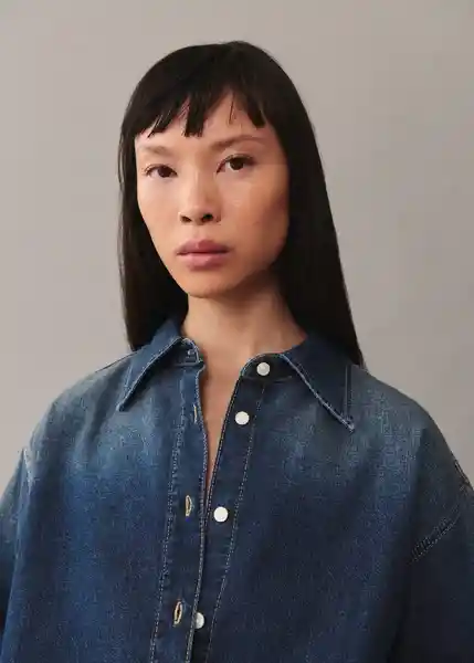 Cierre de Botones, Cierre de Botones en la Manga, Costuras en Contraste, Cuello Camisero, Diseño Oversize, Efecto Desgastado, Manga Larga, Tejido de Denim - 77005660_To.