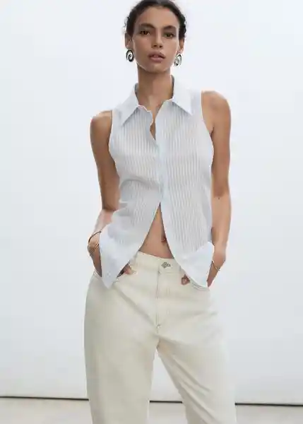 Cierre Delantero Con Botones Cruzados, Cuello Camisero, Diseño de Rayas, Diseño Recto, Sin Mangas, Tejido Con Textura, Tejido Mezcla de Modal y Algodón - 77032917_52.