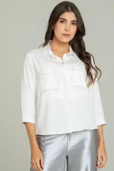 En Tejido Plano Fondo Entero Con Pespuntes en Hilo Contraste Cuello Camisero Perilla Escondida en Centro Frente Con Botones 18L Tono a Tono Manga 3/4 Con Puño en Ruedo Con Botones 18L Bolsillos Cuadrados en la Parte Superior Delantera.