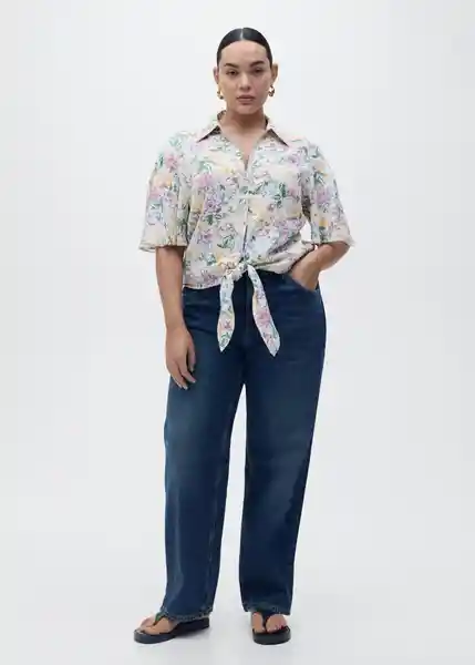 Cierre Delantero Con Botones Cuello Camisero Detalle de Nudo en la Cintura Diseño Crop Diseño Recto Disponible Plus Estampado Floral Manga Corta Tejido Mezcla de Lino - 87037177_05.