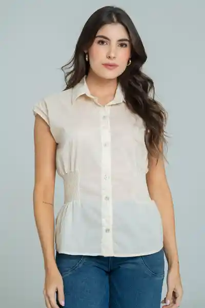 En Algodón Fondo Entero Con Cuello y Perilla Completa de Botones 18L Tipo Nacar Resortado en Cintura Decorativo Espalda Lisa Silueta Semi Ajustada.