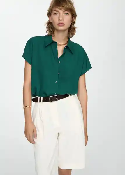 Cierre de Botones en la Parte Delantera, Cuello Camisero, Diseño Recto, Disponible Plus, Manga Corta, Tejido Mezcla de Lino y Lyocell - 77014034_43.