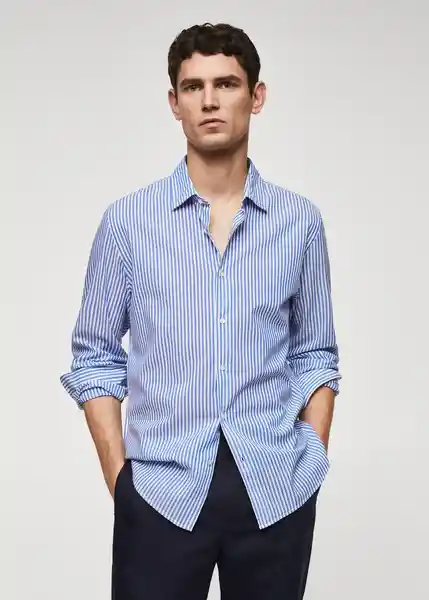 100% Algodón Bajo Redondeado Cierre de Botones Cuello Camisero Estampado de Rayas Manga Larga Con Puños Abotonados Slim Fit Tejido Ligero - 47055902_56.