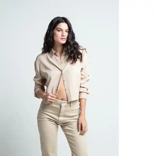 Camisa Samira Mujer Beige Concreto Claro Talla L 511F314 Naf Naf