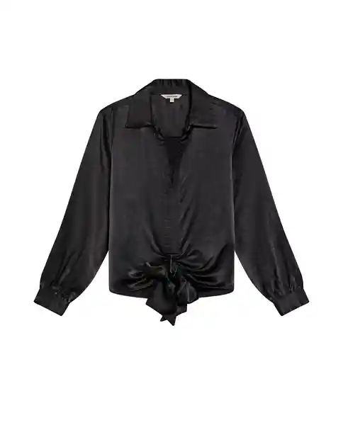 Talla M Para Mujer Con Efecto Satín Que Proporciona Brillo Elegante Silueta Amplia Cómoda Cuello Camisero Normal Con Escote en V Estilizante Manga Larga Con Puños Abotonados Para Acabado Clásico. Tiras Frontales Para Anudar y Ajustar Personalizable. Tela Suave Con Brillo Sutil Elegante Que Llama la Atención Sofisticadamente. Ean- 719G016Neg194007 Plu- 1111133196788.