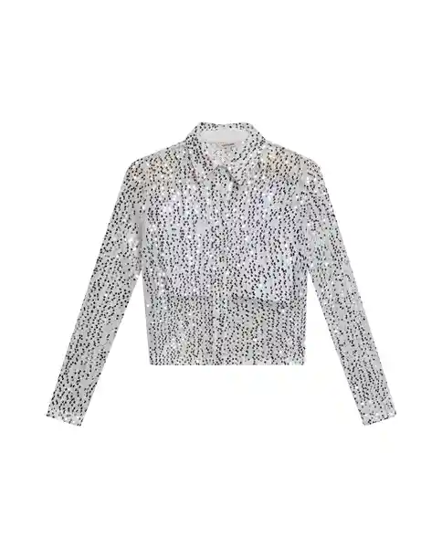 Talla M de Lentejuelas Para Mujer Silueta Regular Cuello Camisero Normal Manga Larga Con Puños Abotonados Para Look Arreglado Perilla Con Botones Para Personalización Elástico en la Parte Inferior Para Ajuste al Cuerpo. Top Interno Incluido Para Mayor Comodidad. Elaborada en Tela de Lentejuelas Que Brilla Con Cada Movimiento. Ean- 719G005Bla110601 Plu- 1111133176674.