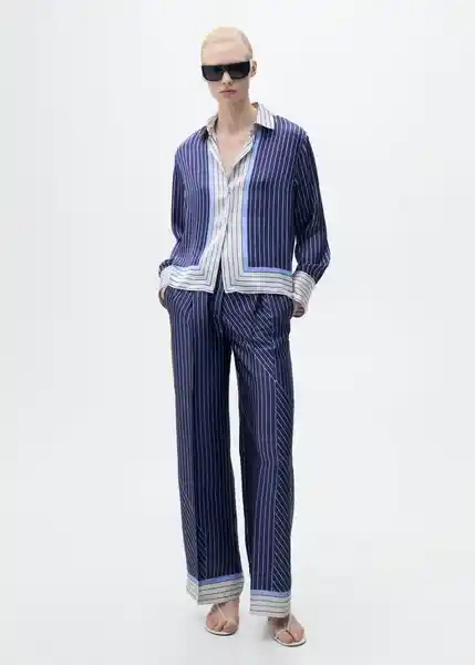 Cierre Delantero Con Botones Cuello Camisero Diseño Recto Estampado de Rayas Manga Larga Con Puños Abotonados Regular Fit Tejido Fluido Con Acabado Satinado Total Look - 87067193_52.