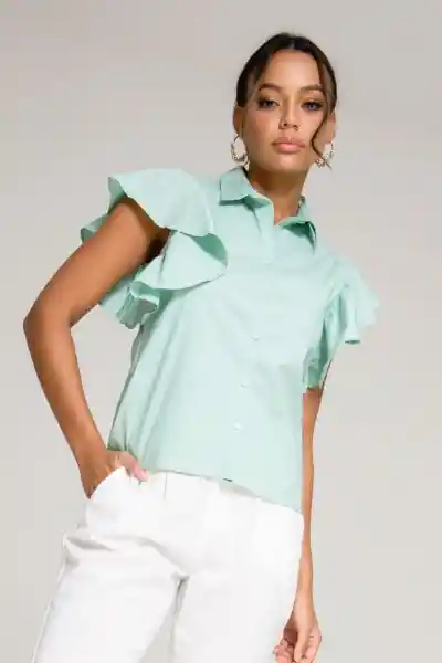 Tejido Popelina Fondo Entero Cuello Camisero Perilla Centro Frente Con Botón de Pasta 16L T/T Manga Corta Con Recogido Parejo Sisa Por Debajo Con Sesgo de 1 cm Silueta Semi - Ajustada.