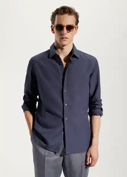 Bajo Redondeado Cierre Delantero Con Botones Cuello Camisero Diseño Estándar el Modelo Mide 190 cm y Lleva Una Talla M Manga Larga Con Puños Abotonados Slim Fit Tejido Con Mezcla de Tencel Una Fibra Suave Ligera Transpirable y de Fácil Cuidado Tejido Ligero Tejido Mezcla de Lino y Lyocell - 57000575_56.