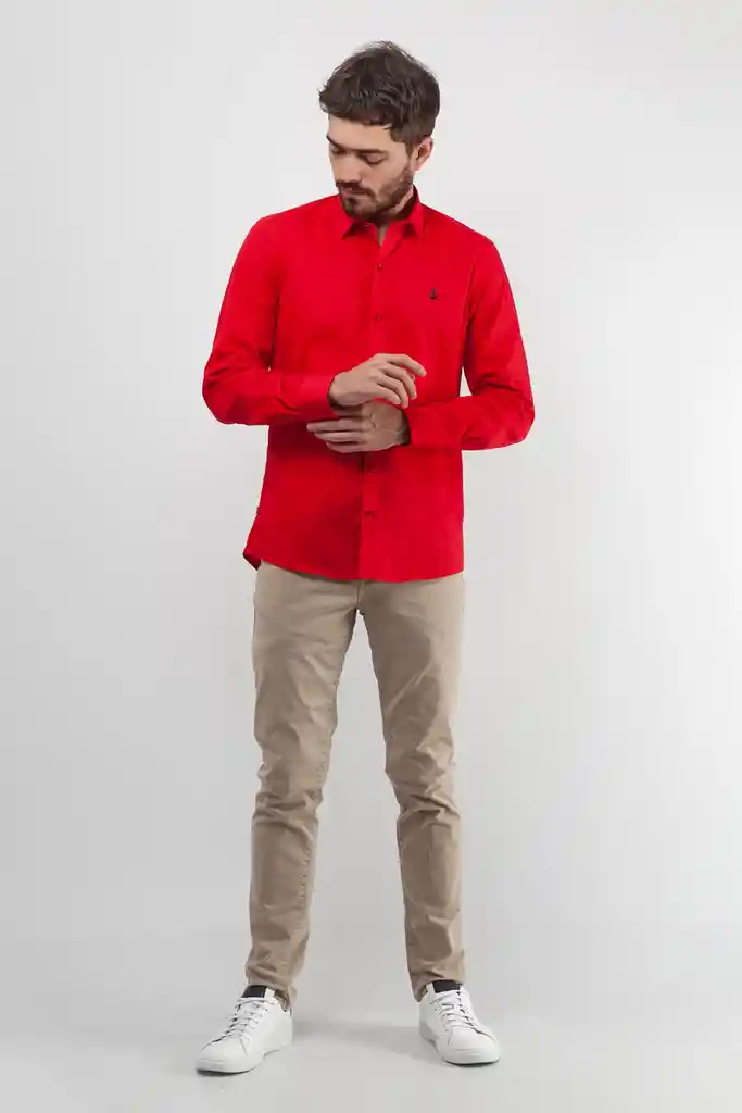 CAMISA MANGA LARGA ROJA CEREZA 97%ALGODÓN - 3% SPANDEX. MOLDERIA SLIM-FIT. HECHA EN COLOMBIA