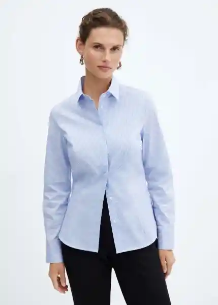 Cierre de Botones en la Parte Delantera Cuello Camisero Detalle de Pinzas Diseño Recto Disponible Plus Disponible en Liso o Estampado Estampado de Rayas Estilo Traje Looks de Oficina Manga Larga Con Puños Abotonados Tejido Popelín de Algodón - 57065785_54.