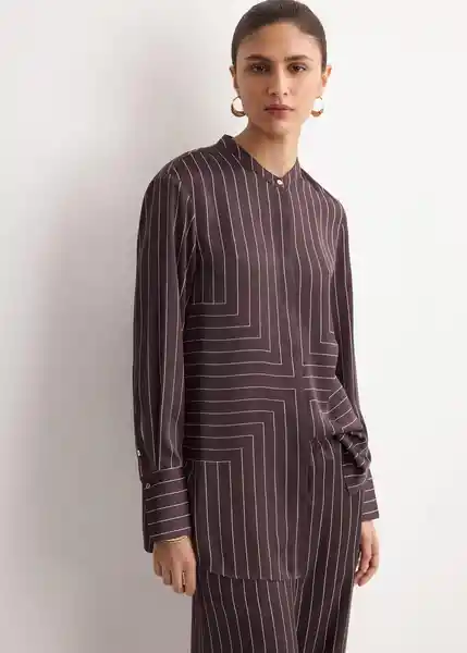 Cierre Delantero Con Botones Cuello de Tira Diseño Largo Estampado Geométrico Manga Larga Con Puños Abotonados Tejido Satinado Total Look - 27064092_32.