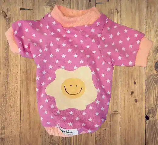Camisa en talla S, ideal para cachorros o mascotas pequeñas. Material ligero, no pesado. Cuenta con unas medidas de 22 cm de largo, 13 cm de ancho y una circunferencia en el cuello de 18 cm.