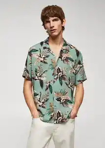 Bajo Recto Cierre Delantero Con Botones Cuello Bowling el Modelo Mide 190 cm y Lleva Una Talla M Estampado Hawaiano Manga Corta Regular Fit Tejido Fluido - 57065801_46.