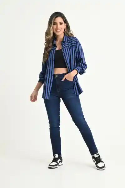 En Chalis Estampado Rayas Cuello Camisero Perilla Completa Con Botones Manga Larga Con Botones en Puño Almilla en Frente y Espalda.