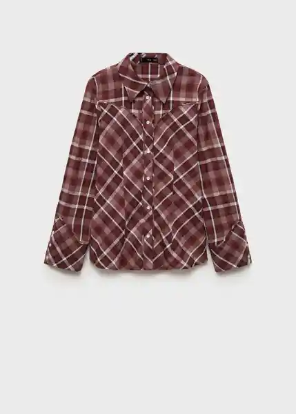 Cierre Delantero Con Botones, Cuello Camisero, Diseño Recto, Estampado de Cuadros, Manga Larga Con Puños Abotonados, Tejido Mezcla de Algodón - 77005657_78.