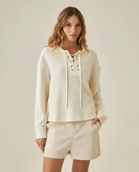 Femenino. Silueta Amplia Media Perilla Con Ojaletes en Algodón 68% Poliéster 30% y Elastano 2%. Bordado y Cordón Entorchado a Tono. Puños en Complemento Tejido. Tela Suave Con Textura Tela Galleta (Waffle). Construcción Con Cordón Entorchado Decorativo. Silueta Amplia Oversize. Ean- 781H004Cru114302 Plu- 1111133244243.
