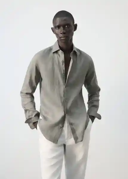 Bajo Recto Cierre Delantero Con Botones Cuello Camisero Essentials: Made to Last Manga Larga Con Puños Abotonados Slim Fit Tejido 100% Lino - 27095947_35.