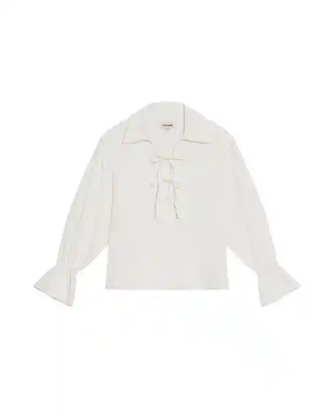 Talla L Para Mujer Silueta Amplia y Cómoda Cuello Camisero Normal Con Escote Decorado Con Moños Que Proporcionan Toque Romántico y Femenino Manga Larga Con Elástico en Puños Que se Ajustan Suavemente Sin Apretar. Elaborada en Tela Suave Estampada Con Líneas Brillantes Que Capturan la Luz Proporcionando Personalidad Luminosa y Carácter Distintivo. Ean- 719G010Cru114302 Plu- 1111133195835.