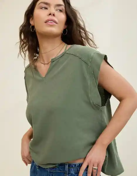 Tela Ligera y Fresca Cuello Entallado Deet Costuras de Hombro Caídas Dobladillo Alto-Bajo