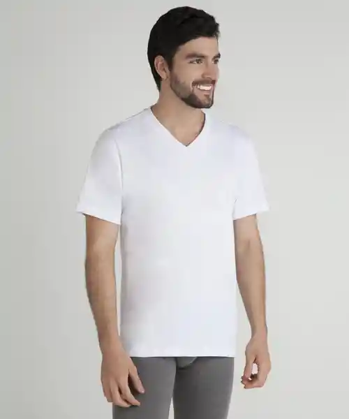Camiseta Algodón Cuello V Lisa Manga Corta Blanco XL