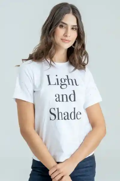 En Tejido de Punto Cuello Redondo Manga Corta Con Apliques Estampado Localizado.