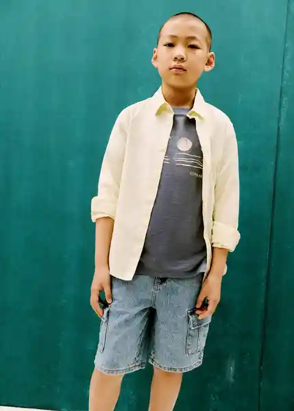 100% Algodón Cuello Redondo Estampado de Palmeras Manga Corta - 87018278_52.