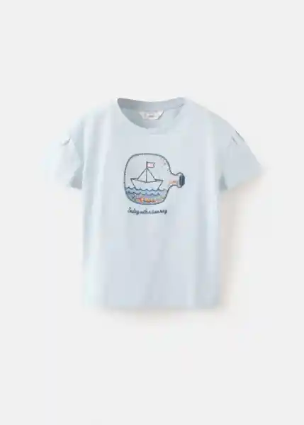 Cuello Redondo Dibujo de Barco Estampado en el Pecho Diseño Recto Manga Corta Tejido 100% Algodón - 27005166_50.