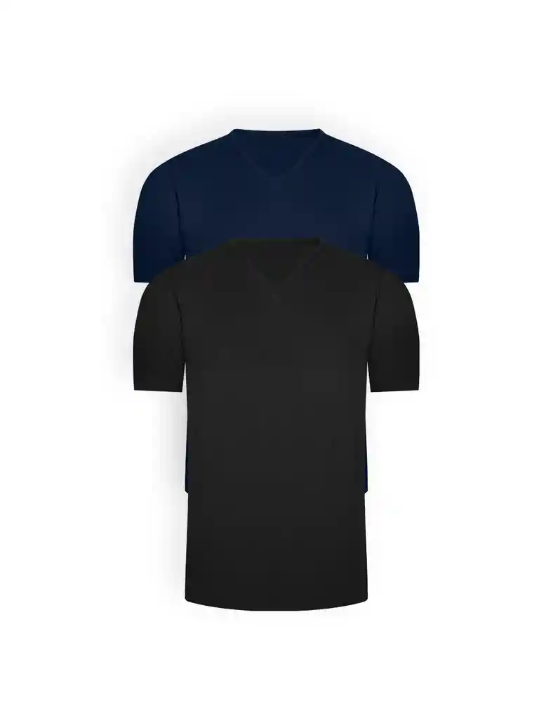 Camiseta Basica Algodón Cuello V Manga Corta Pack (x2) (2850) Unicolor Azul Oscuro-negro M