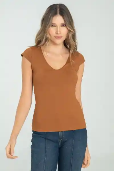 Camiseta Basica Escote V Color Cafe Caramelo Talla M Ragged