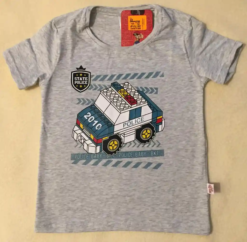 Camiseta bebe de 6 a 12 meses, color gris claro con estampado de carrito en parte delantera