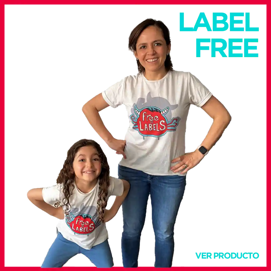 Camiseta color crema Talla M, con ilustración y leyenda: FREE OF LABELS Hecho en Colombia 91% poliéster 9% elastano