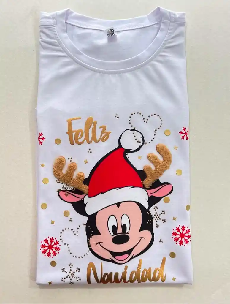CAMISETA BLANCA PARA NIÑO FELIZ NAVIDAD TALLA 12 DISEÑO MICKEY MOUSE EN ALGODON