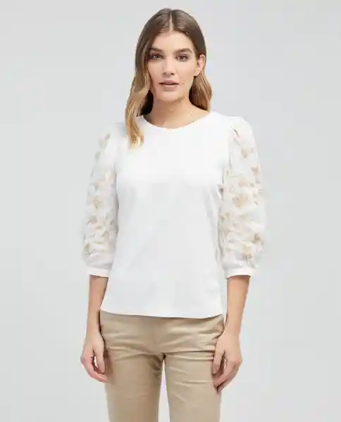 Manga 3/4 Con Cuello Redondo Para Mujer Sku 401E002A00958 Ean 7706455929431 Blanco Puro Claro.