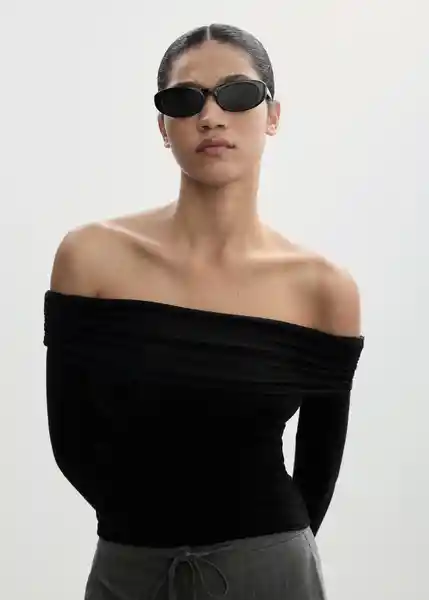 Cuello Escotado, Detalles Fruncidos, Diseño Entallado, Diseño Off-Shoulder, Hombros Descubiertos, la Modelo Mide 178 cm y Lleva Una S, Manga Larga, Tejido Punto Circular - 77074030_99.