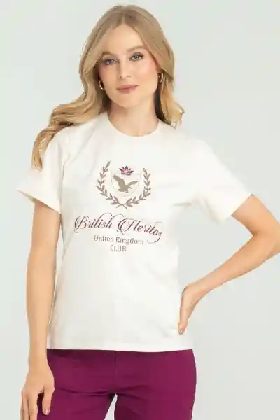 En Tejido de Punto Cuello Redondo Manga Corta Estampado Localizado.