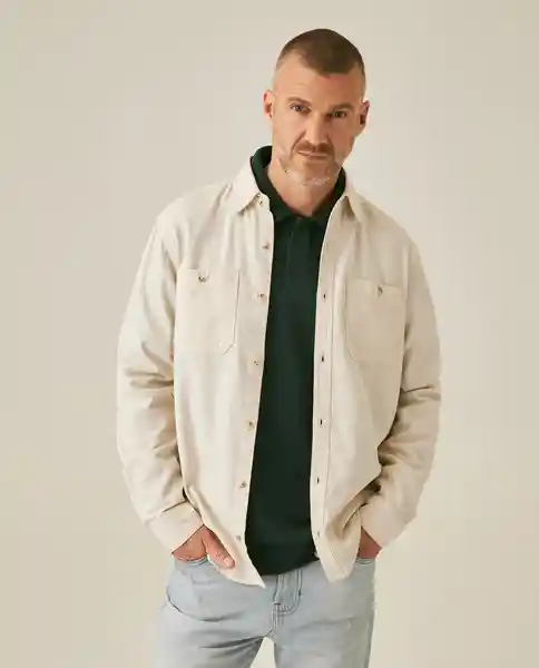 Masculina Manga Larga Regular Fit en Algodón 66% Viscosa 23% y Lino 11%. Tela Con Efecto (Hilos de Denim - Lino de Denim). Bolsillos en Frente Con Botones Marcados y Acabados. Bolsillos de Parche. Construcción Más Estructurada Con Look Utilitario. Estética Jeanswear. Silueta Regular Fit. Ean- 611H008Cru110701 Plu- 1111133251104.