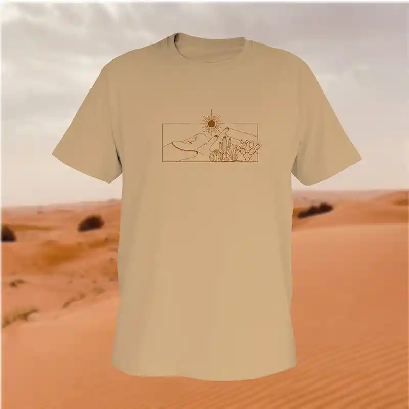 Camiseta silueta regular, 100% algodón, estampado desierto al frente y centrado
