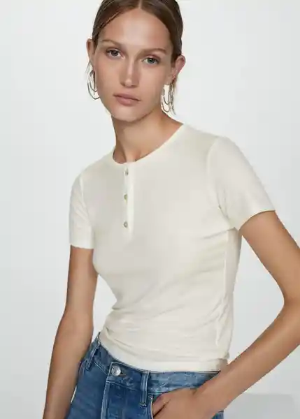 Cierre de Botones en el Cuello, Cuello Redondo, Diseño Entallado, Manga Corta, Tejido Mezcla Lyocell - 77054443_01.