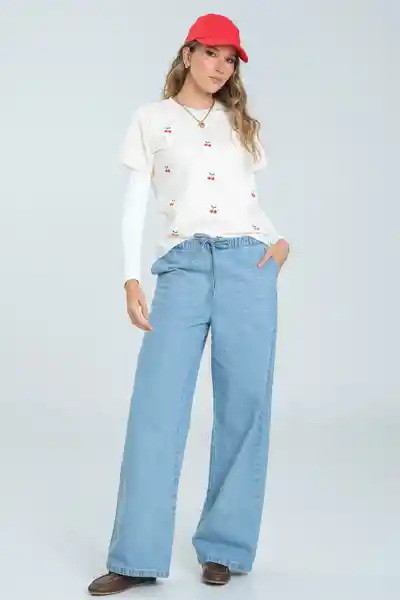 En Tejido de Punto Escote Redondo Manga Corta Estampación en Frente.