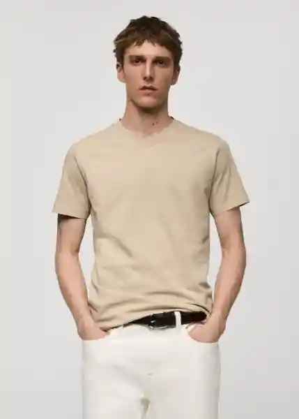 Bajo Recto, Cuello Pico, el Color Marrón Medio es Exclusivo Online, el Modelo Mide 190 cm y Lleva Una Talla M, Manga Corta, Slim Fit, Tejido 100% Algodón - 77080584_08.